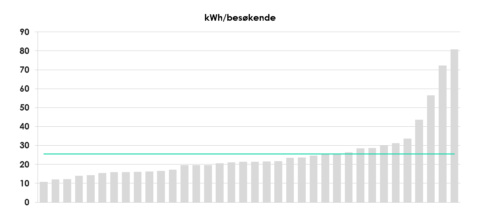 Er det ikke noen badende i anlegget, er energibruken mye lavere. Det nøkkeltallet som representerer energibruken i svømmeanlegg best er kWh/besøkende. Flere detaljer rundt dette temaet finnes i avhandlingen eller i en publisert nettartikkel [3].
