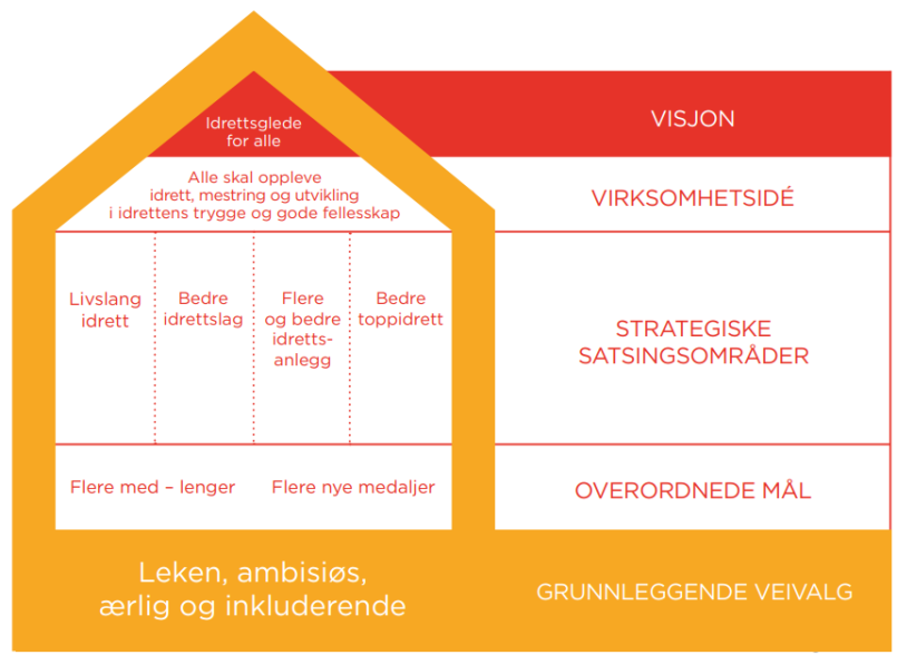 For å svare på hva som er verdifullt for norsk idrett gikk vi gjennom Norges idrettsforbund og olympiske og paralympiske komité, NIF, sin langtidsplan for norsk idrett, «Idretten vil!», og NIFs rapport om idrettspolitikk, «Idretten skal!». Her presenteres NIFs visjon, virksomhetsidé, grunnleggende veivalg, overordnede mål og strategiske satsningsområder for norsk idrett. Rapportene representerer en felles forståelse om hvilken retning norsk idrett skal gå. Gjennom å skape en slik enighet om norsk idretts foreløpige retning har man samtidig skapt en veileder for særforbundene, som skal gjøre sine egne strategiske beslutninger.
