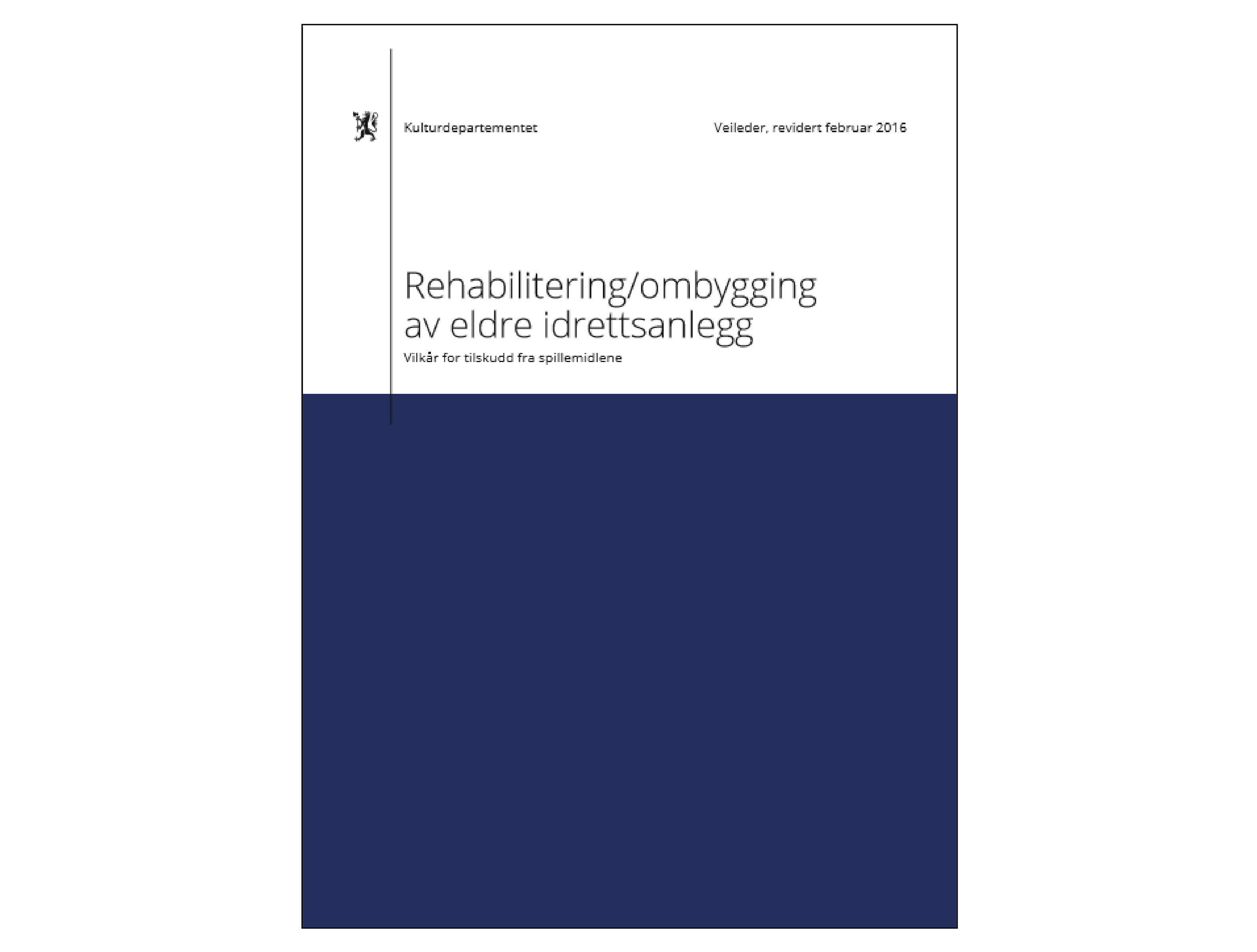 Denne veilederen fra Kulturdepartementet handler om hvilke vilkår som gjelder for å kunne søke om tilskudd av spillemidler til rehabilitering av anlegg for idrett og fysisk aktivitet. Veilederen er revidert i 2016.