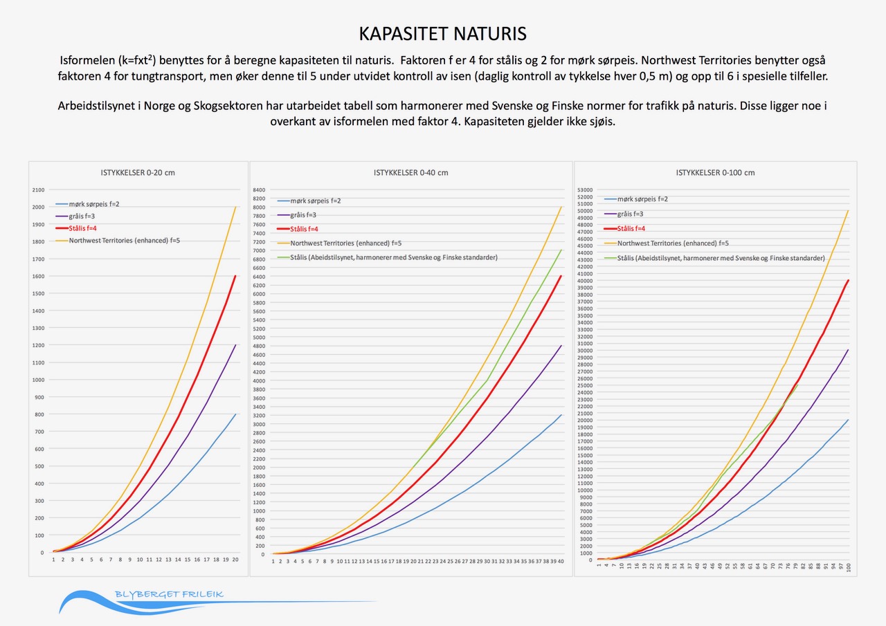 I tabellen nedenfor gjengis myndighetenes stipulerte iskapasitet ved forskjellig tykkelse og kvalitet.